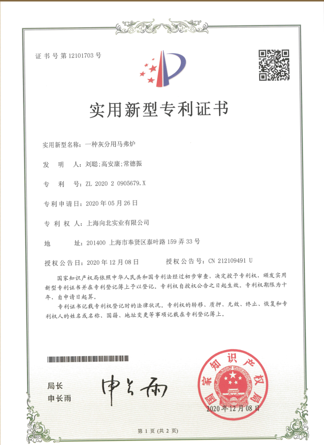 上海向北实业有限公司是一家专业集生产研发和销售为一体的综合性公司,主要生产马弗炉,高温炉,箱式炉,电阻炉,气氛炉和烘箱等实验和生产设备,经数年时间研发了一种灰分用马弗炉,专利号:ZL202020905769.X